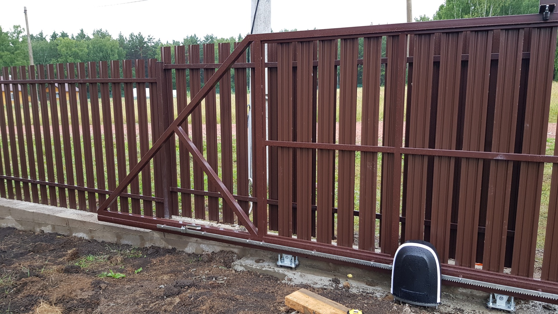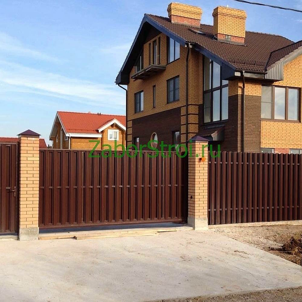 Откатные ворота из профнастила с автоматикой